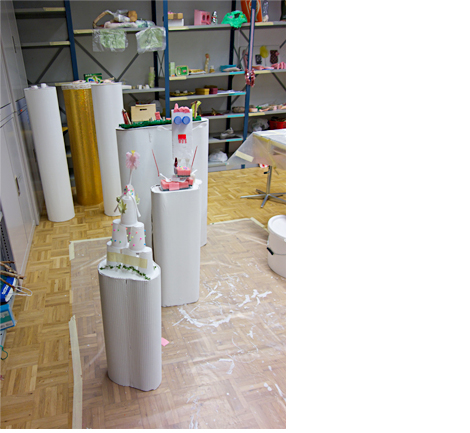 Mit Wellkarton, Holz, Leim und Farbe erstellen wir auf einfache Weise eigene Sockel und lassen darauf unsere Lieblingsstücke aus dem Alltag zu Kunst werden.
