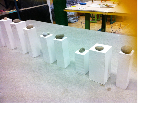 Wir beschäftigen uns mit dem Thema Sockel. Was passiert, wenn wir scheinbar wertlose Alltags-gegenstände, die uns besonders aufgefallen sind, wie beispielsweise ein Holzstück, eine rostige Büchse, eine Plastikfigur oder ein Schwamm auf einen Sockel stellen? Wie verändert sich die Wirkung der Gegenstände und wie verändert sich unser Bezug zu den Gegenständen durch das Erhöhen und das Aufwerten mittels der Präsentation auf einem Sockel? Wie und warum kann ein Alltagsgegenstand zu Kunst werden?